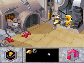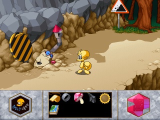 The graphics in 640x480 resolution and the animations as well look just like a saturday morning cartoon, and the main audience for that medium is also targeted by Eol-ui Hwansang-ui Seom. The game is fully voiced in a childish fashion, and the puzzles are almost insultingly simple. There is always only one way to interact with any given hotspot, most of the time items are even used automatically when they are just in the inventory. In other instances, it is enough to be in the right room when clicking an inventory item to trigger the right interaction.