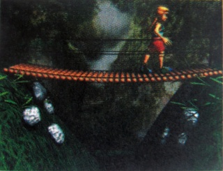 Bloody Aria is the first game by FEW that uses real time polygon models. But only for the characters, for the backgrounds the game relies on fixed camera angles and prerendered images like Resident Evil. Apparently it is more action-oriented, though, it has been compared to Nightmare Creatures.