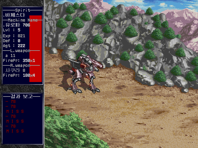 The overview map screen looks very functional without any unnecessary embellishment, but the robots in their attack animations attest competent pixel art craft. Too bad that it should remain rarely employed, as for most of their future games, FEW shifted to cheap prerendered graphics.