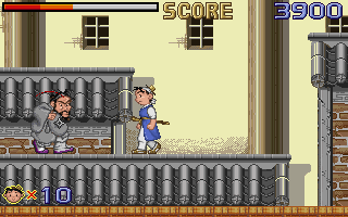 Stage design feels a bit loose at times, but never uninspired, and there are some genuinely challenging platforming sequences. The enemies are a threat mostly because the hit detection still isn't quite transparent, and one gets hit faster than one would think. A rocket riding pseudo 3D sequence and snippets from the animated series in between stages help to mix up things.