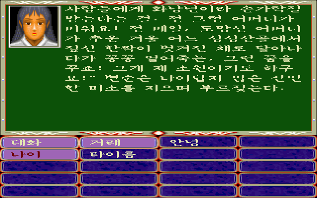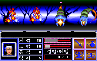 Goldstar directly hired the first absolvents of the Goldstar Game School as the internal team Sanjini, and assigned them to produce an RPG based on the winning entry of a 1993 scenario writing competition12. The tale around the search for a magical flute whose music was the only means to bring peace back the insurgence-ridden country is rooted in Korean folklore, but for once the writer didn't base it directly on a particular folk story like the Hong Gildong-jeon. It rather takes historical places, events and persons like the scholar Heo Gyun to weave an intriguing story, which makes it one of the more unique titles in Korea's early PC game history.