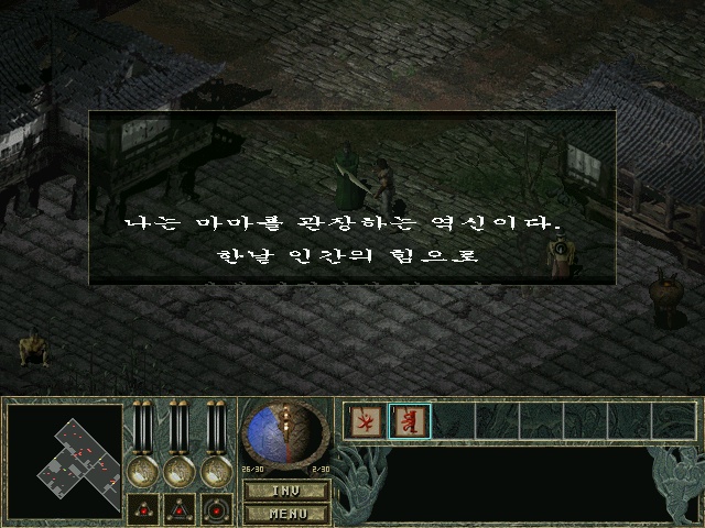 The final product they presented about a year later showed itself in tune with the genre's origins on the peninsula. Just like Sin'geom-ui Jeonseol seven years before, Iljimae-jeon was clearly inspired by the Ultima franchise, but also the influence of more simplistic approaches began to show. So the player would be able to grab everything that wasn't nailed to the wall and engage in extensive conversations via keywords, but the combat system turned out very akin to games like Dragon Quest.