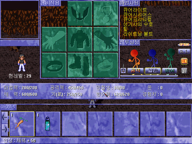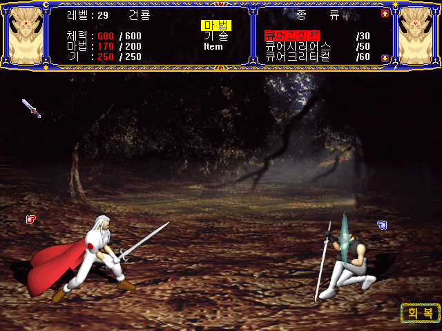 Mips was the first game developer hailing from Busan, a rare sight in the Seoul-centered economy (Mirinae Software had started out in Daegu, but soon moved to the capital). During the development of their second title, they took the independent team Garam & Baram under their wing, who helped out with the game in turn for Mips' funding and co-producing their current game adaption of Park Seongu's manhwa The Legend of Eight Dragons. There was even a live concert helt in October 1997 to promote the game's music, the first of its kind in Korea1. However, before the game was finished Garam & Baram parted ways with Mips2, who kept capitalizing on the license for the next few years with a hardly connected fighting game "side story," by publishing the first game's original design tools as RPG Director, and finally a planned sequel that was never produced.
