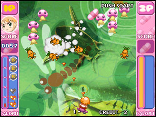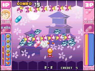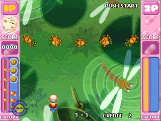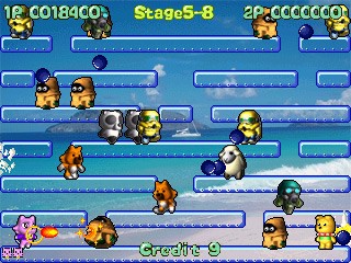 On first glance, Lode Quest and Dream World seem like typical Bubble Bobble clones. The characters are even brought into the stages by huge bubbles, but those suggest a greater similarity between the games than actually exists. In fact, Semicom mixed the concept heavily with influences from Lode Runner, thus the title Lode Quest (it is not possible to discern right now whether Dream World is an actual update or just a changed title for international release). The games are no longer confined to a single screen per stage, either, introducing scrolling into all directions.