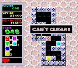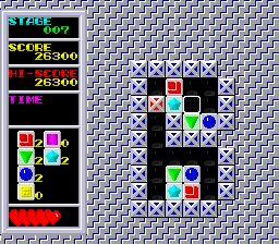 BriXian is a Puzznic clone, but a bit more dynamic than the original. Most of the levels have elevators that are crucial to the solution, and every stage comes with a severe time limit.