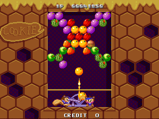 Taking famous franchises and copying them almost exactly with just a different graphical layout has always been a very common practice in the Korean arcade business. The three Cookie & Bibi games of course are derivates of Puzzle Bobble / Bust a Move, replacing Bub and Bob with a duo of squirrels.