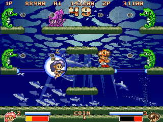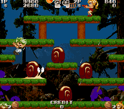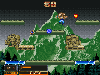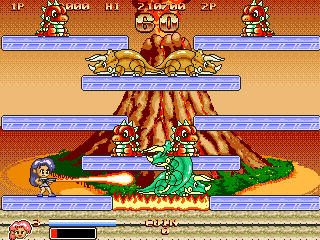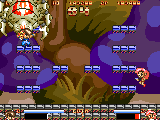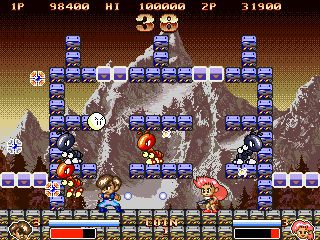 Cheil Computer's contribution to the ever popular single screen arcade action platformer genre. Just like Bub & Bob from Bubble Bobble and all their other colleagues in similar games, the martial artist Hanbit and the heavily armed Narae clear out level after level by destroying all enemies on screen, of course not without the aid of countless powerups left over by the defeated.