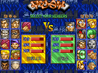 Both players chose from a cast of eight characters (apparently, Michael Jackson was the epitome of popular in 1990's Korea, too), who then occupy the lower part of the screen to harrass each other with special moves each time a player does something special, like deleting multiple rows at a time. While it is possible to make the opponent lose by clogging the whole play field, there is a strict time limit and most rounds will be decided by the status of the characters' life bars. How those are reduced isn't always transparent, though, which can lead to much frustration.