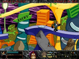 SiEn Art's last released game featured hi-res vesa graphics, but was as much as a mess as the previous ones, technically. The controls are awkward and terribly glitched and the collision detection none the better. Even disregarding these problems, the difficulty is just downright unfair, ammunition and health always in much too short supply. There's a kick and a punch attack for melee, but one wonders why the choice, as the punch is vastly inferior in every situation. The game also looks really ugly, mixing rendered graphics with (badly) hand drawn ones whenever it sees fit.
