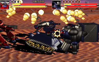 Mechanic War is more than just a little bit inspired by Capcom's arcade brawler Armored Warriors. It only supports two player gameplay opposed to the three available in Armored Warriors, but the mechanic about recycling the parts of detroyed enemies for new attacks is simply carried over.