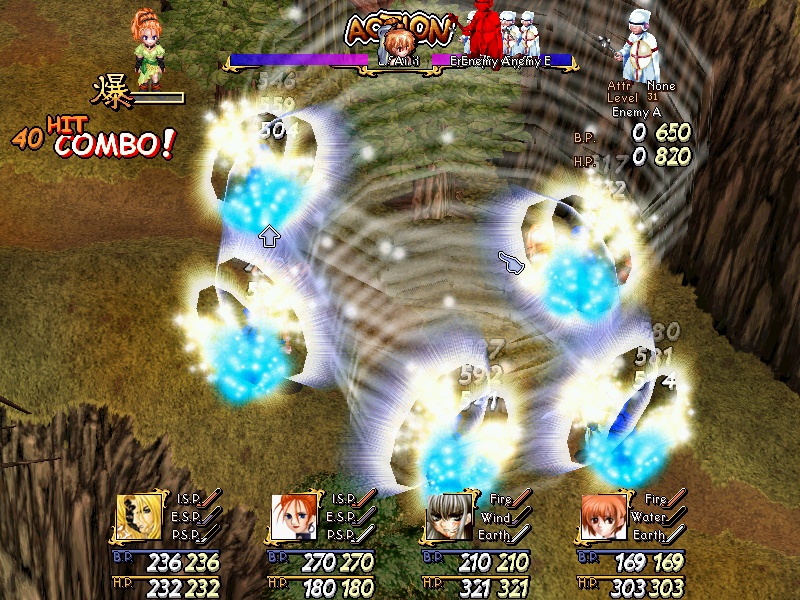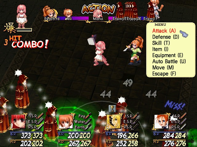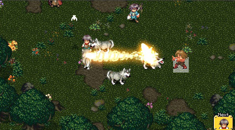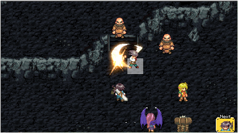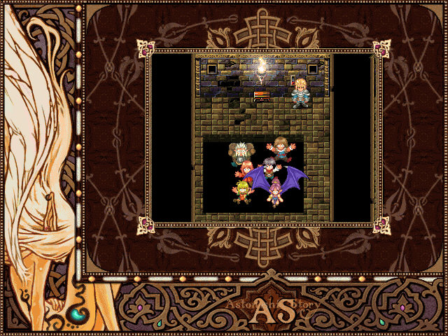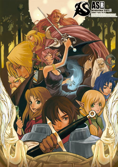 As kind of a side story, Forgotten Saga takes place in the same fictional universe as Astonishia Story, but the plots aren't interlinked and there aren't many shared characters save for Passman. While combat works similar as in Astonishia Story, there are a lot of surprising WRPG influences. In the beginning the main character's class is determined by a catalog of questions, just like in many Ultima games. Then three companions are picked from a variety of classes and typical fantasy races (Elves, Dwarves and Hobbits). Two more slots are available for more characters to join temporarily, or even replace some of the original companions for good.