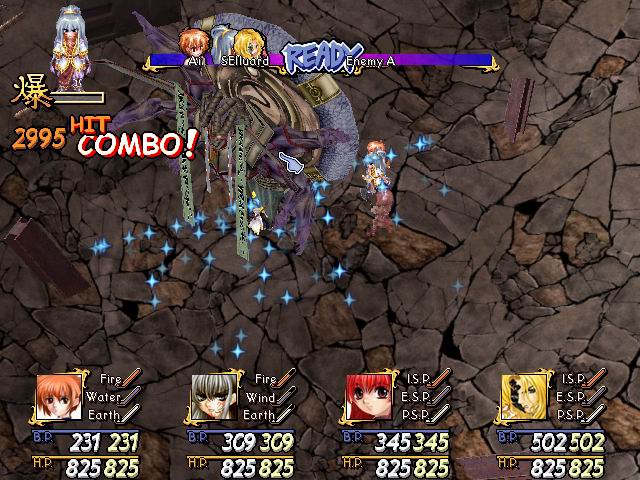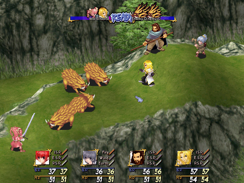Not only the graphics engine resembles Grandia with its 2D sprite characters in a polygonal world, the action time bar in combat works similarly too, although the whole system is more akin to the more dynamic variant in Grandia II (which was released only a couple of months before Arcturus. Untypical for the genre, however, combat plays a minor role overall. The focus rather lies on the dialogues and story, and Arcturus contains lots and lots of text.