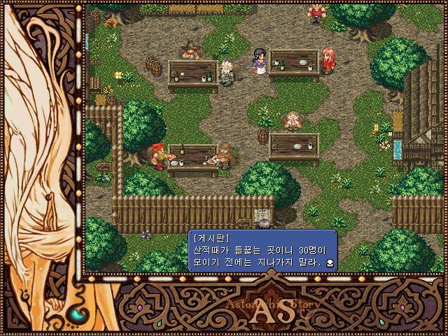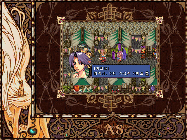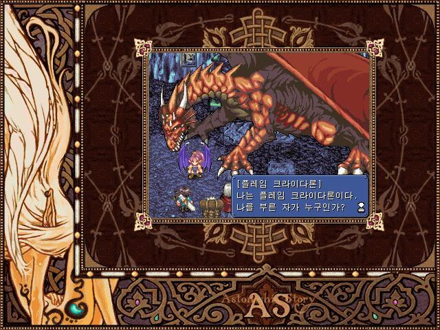 Because of its high popularity, Sonnori remade the game as Astonishia Story R for the GP32 in 2002 with completely changed graphics and new events, and even whole areas redone and expanded. A Windows port followed, but the interface was somewhat cumbersome with the action often taking place only in a tiny window in buildings and during cutscenes. Finally, the game got a PSP version in 2005, whose graphics were based on the remake, but pimped with new visual effects. This is the first version of the game (and the first Sonnori game overall) ever to be released in English, but the translation was reportedly not very good.