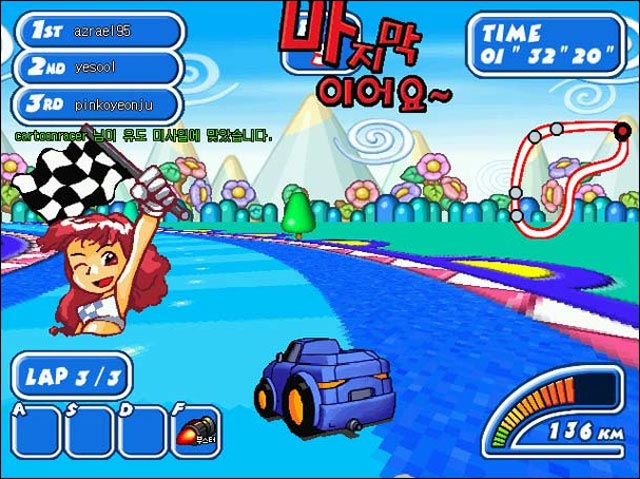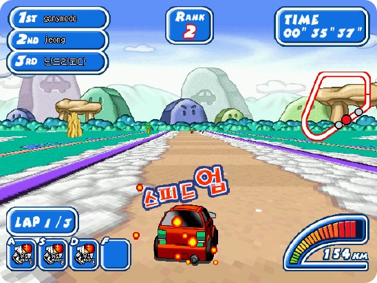 Sonnori's online debut was less impressive than Ntreev's at first glance, a fun racer with 16-bit style pseudo-3D graphics. Offered on CJ Internet's Netmarble service, it nonetheless enjoyed some popularity. When the Korean servers were shut down around 2006, many Korean gamers turned to the Chinese service, which lasted until 2010.