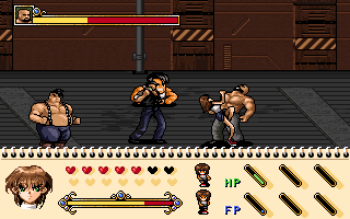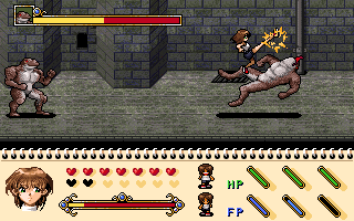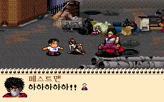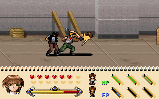 To the surprise of Astonishia Story fans, Sonnori's second game was a beltscrolling brawler like Final Fight or Streets of Rage. Well, not quite like those, as heroine Suhee got two additional meters, displaying her "Hungry Points" and "Feeling Points". The former are raised simply by picking up the various food drops and deplete over time, while "Feeling Points" are a bit more complicated to maintain, influenced by doing combos and getting hit. Both are used to determine Suhee's condition and mood, which not only changes her walking animation, but also gives her individual strengths and moves in each state.