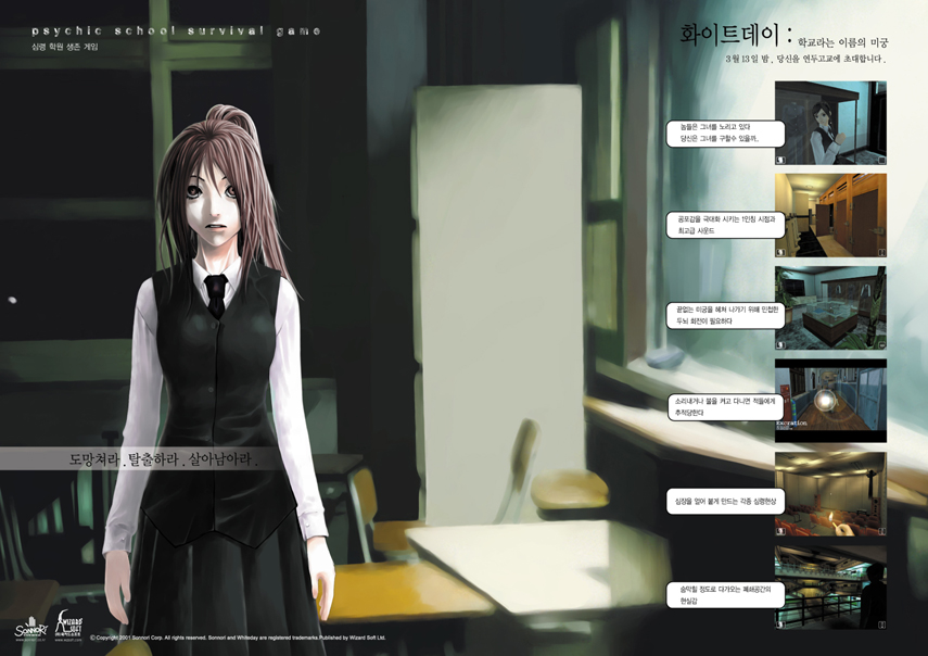 It should also be the last major "package" game Sonnori produced, as broadband internet and warez had thoroughly destroyed the market by the time it got released: Sonnori reported 100,000 patch downloads at a time when only 3,000 copies of the game were actually sold. Even when taking into account possible redownloads by the same users, the numbers speak a very clear language31. As late as 2004, UK publisher AM Entertainment announced to localize the game, but never got to release it. An English language beta version (which appears to have been translated in Korea) was leaked, though. But now White Day is one of the very few Korean games that got fan translated so far.