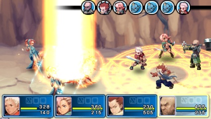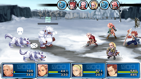 Known in the west as Crimson Gem Saga (and in Japan as Garnet Chronicle), the game itself is closer to a typical JRPG, the PSP version adds more content, more graphics, more bosses, and an automap. The combat also got changed, from a typical ATB system to an "ordinary" turn-based one33. In 2010 the PSP version als ogot ported for iPhone.