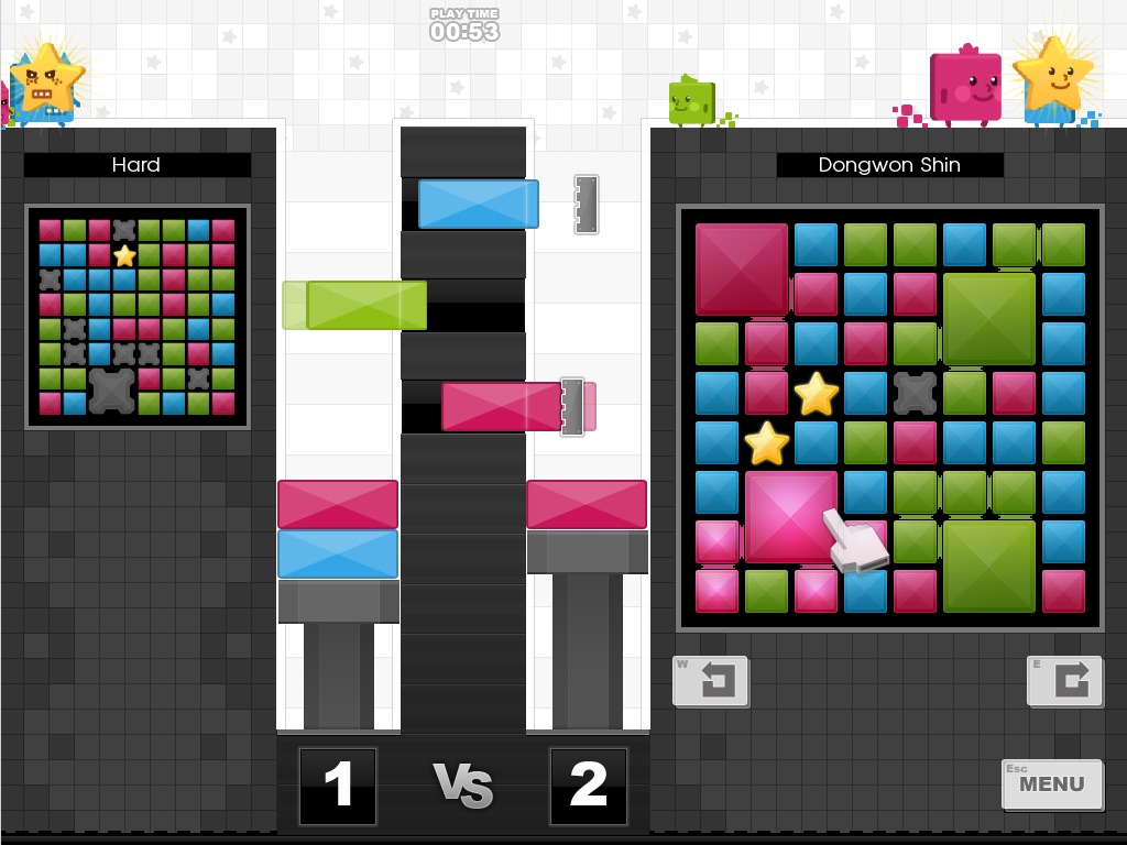 Clickr is a neat little flash puzzle game developed by a small team at Ntreev with an "indie game spirit." The concept is genre-typically simple: Just click to let same-colored connected blocks disappear. Several obstacles and additional elements make it more challenging than it looks like, though.