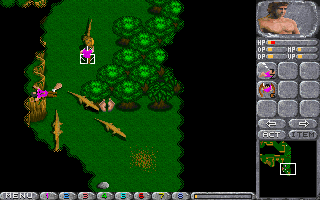 About a year before its eventual release, TRIC uploaded a demo version, which still ran in 320x240 VGA graphics with pixel art instead of the final high res rendered visuals and looked rather close to the first Warcraft. While the graphics have been fully updated, the clunky, unintuitive interface still betray's the game's early roots and makes coordinated movements quite difficult to pull off. The only ressource in the game is meat gained by hunting. There's no way to automate this, so the player is always occupied killing enemies and carrying the gained food back to a storage, which gets tedious fast.