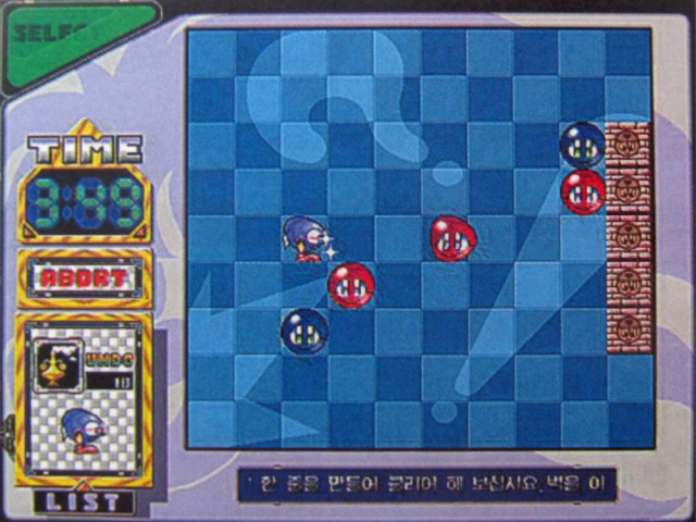 Among the many games Dongsung Joycom announced, Think Q was one of the few that actually saw a release. At first it looks like a blatant clone of Makkoya's Spread Out series thanks to the red and blue colored blobs, but the rules to Think Q are far more elaborate. It's so complex, actually, that it's hard to understand just by textual descriptions in Korean, so a further description has to wait until the game itself can be retrieved.
