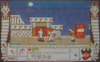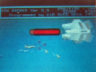 A fighting game inspired by Street Fighter II. It was programmed by Kim Seongjin together with two others, and displayed in Hercules graphics10. A screenshot from a cutscene for the game rips off the popular (also in Korea) novel/manga/anime Ginga Eiyuu Densetsu (Legend of Galactic Heroes), more specificly the two characters Reinhard and Yang. That's everything known about the game. "The Fighter" is not the easiest title to research, after all.