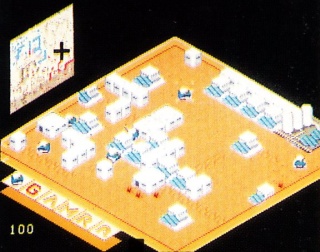A strategy game, supposed to run in real time and to be slightly inspired by Dune II, although the screen composition more closely resembles Populous. Nothing else is known, and the game didn't even have a title at the time of its coverage21.