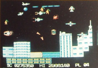 A vertical scrolling shooter by Makkoya, which was compared to Xevious for its structure of fluent area transitions instead of separate stages. A few abstract renders for enemies were all that was shown.