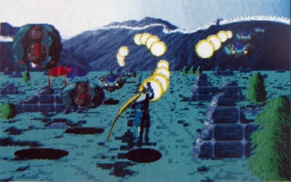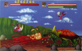 HIC Infocomm had already released a multimedia CD by license of the TV drama series Morae Sigye ("Hourglass"), but when they started to enter the gaming industry proper, they also announced a game based on the franchise. This wasn't developed in-house, but at a team in the US that consisted entirely of Korean-Americans, Joy Cinemedia. Their staff included a Ken Shim, who supposedly already worked on Creature Shock and Fury³ (although his allegiance to either title cannot be confirmed when comparing their credits listings on any of the big video game databases). The first screenshot made the game look like a traditional 2D fighter, whereas later it was described as a mix of 2D adventure elements similar to Full Throttle and 3D action scenes inspired by Bio Forge18.