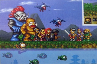 Early Mega Drive screenshots still showed opaque blue text boxes and menus, while those have been made transparent later. The main graphics and overall story appear to have been the same, although some scenes were arranged differently in detail (see examples below). In combat the player characters used to be centered at the lower portion of the screen with the menus unfolding around them, while the final version puts them in the far lower left corner21.