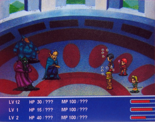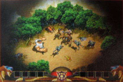 While following the same general JRPG formula as Protocoss, with the active turn battl bars from Final Fantasy, Rhapsodian Occulteller also showed influences from the Western school. The world and its monsters were heavily Dungeons & Dragons inspired (the designer claimed having used a "monster dictionary" for chosing them, which cannot mean much else than some kind of D&D Monster Manual), and not every monster encounter had to result in a fight to the death, as options to parley with the enemies were planned. The combat relied heavily on attack speed; getting hit while preparing an action would not only increase the damage taken, but also have a chance at interrupting said action. The weight of a character's equipment was supposed to factor heavily in the equation, averting the linear "bigger is better" scheme of a typical JRPG. Individual pieces of equipment could also be improved. (The example given was bathing leather in dragon blood.) Upon level up, players would have been able to chose the attributes they wanted to raise, and dialogues were likewise to be interactive with different replies for minor variations in the plot.8
