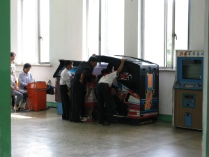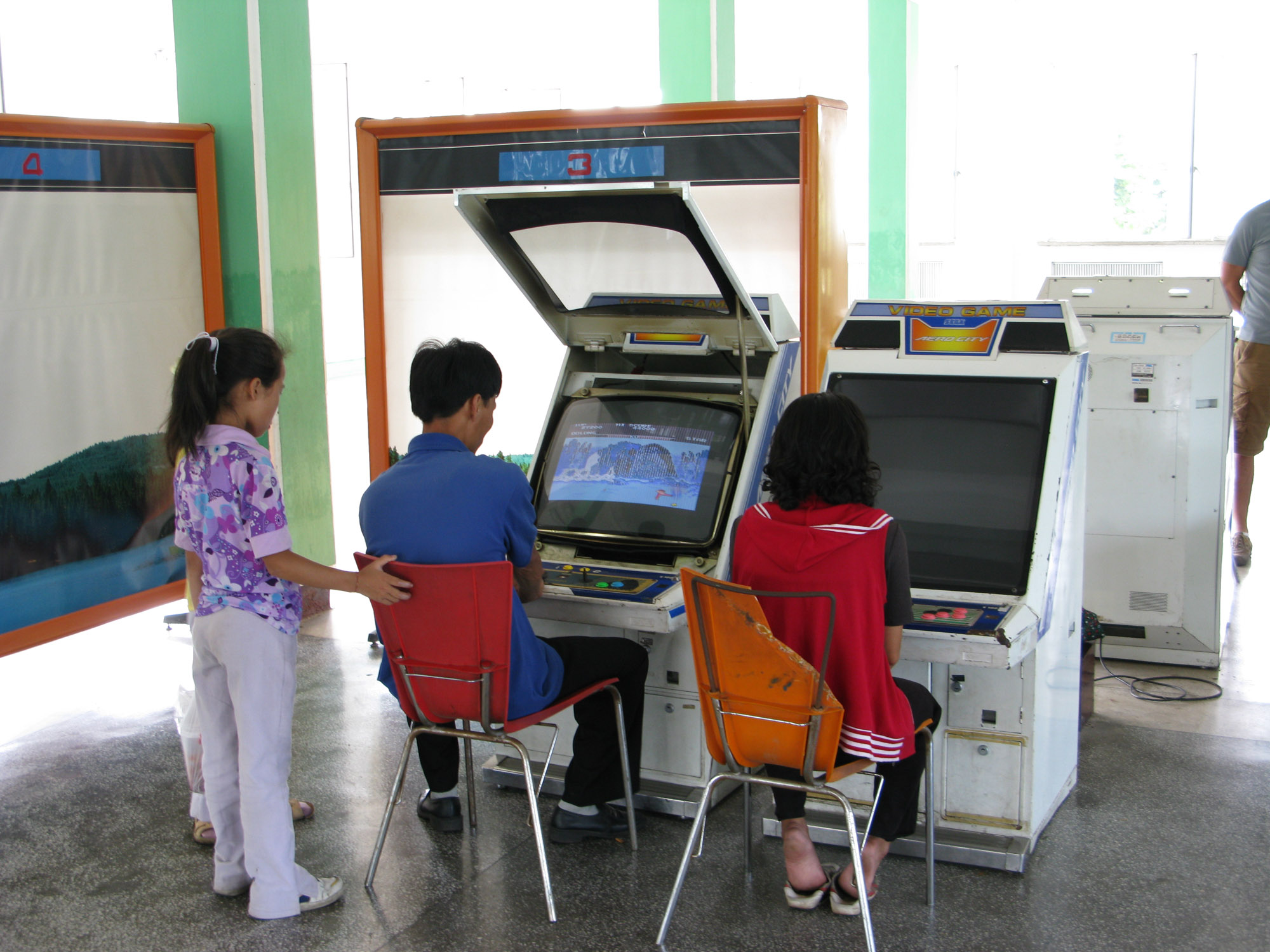 On the flipside of the coin, everything seen in pictures taken in North Korea may exist just because the government there wants it to be seen from the outside, and there's nothing that can be said about the average North Korean's access to video games outside of those special places, which are often aimed at tourists and/or upper class citizens. At least by 2010, North Korea was able to present an arcade with more modern equipment (mostly machines from the 1990s) at Gaeseon Amusement Park near Pyongyang5. In 2012, Hardcore Gaming 101 reader Mike Koz visited Pyongyang and discovered two arcade areas inside a bowling alley and the Taedonggang Diplomatic Club. We're hosting a photo stretch in our Games of the World section.