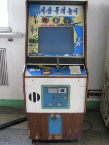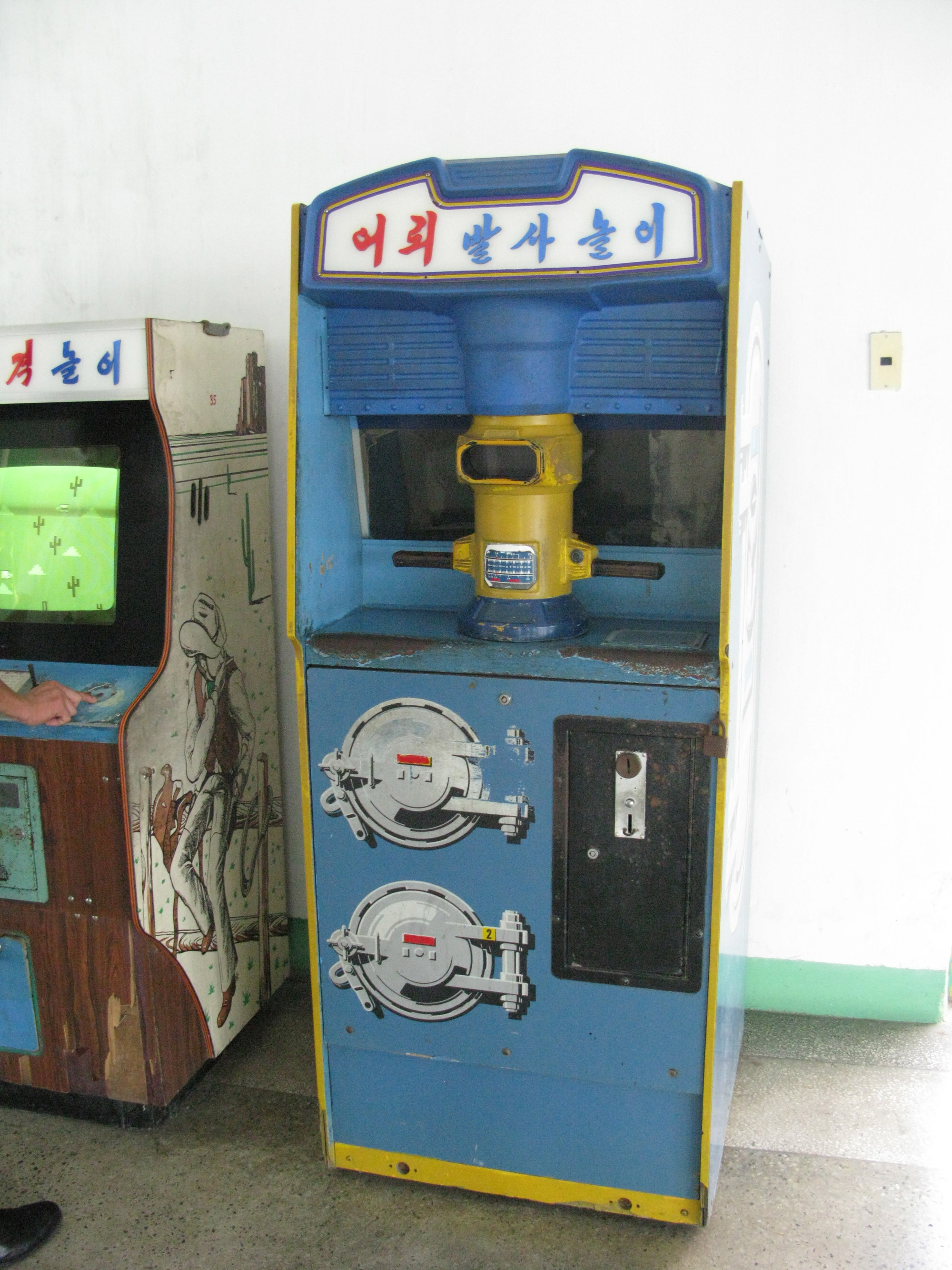 The earliest report about arcade games in North Korea reached the South in the earlier 1990s, when a goldfish store opened in Pyongyang's Reunification Street, which also happened to hold arcade machines for the kids2. Mention of a dedicated arcade followed in 19993, though information on further details was once again very sparse, as would be expected. More recently (September 2008), a series of pictures supposedly taken at a North Korean arcade by an anonymous photographer surfaced on the net, showing a few archaic machines in changed cabinets with labels in Korean (they have been identified with Midway's Gun Fight from 1975, Electra's Flying Fortress from 1977 and Midway's Submarine from 1979) next to various well known 80's games in standard Sega Aero City cabinets, like Konami's Yie Ar Kung Fu4.