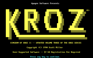 While Kroz might have been impressive back in the day, now it’s just more dated than anything else. If you can get past the simple graphics, the gameplay’s still frustrating, and none of the games are really that different enough to justify playing through more than one. If you play a Kroz game, be sure to lower the cycles in DOSBox, as the game will run far too fast to play otherwise.