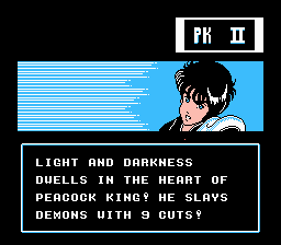 While clearly flawed in some ways, Kujaku Ou 2 is an interesting game. It demands a lot of patience, but rewards it with a cool storyline and atmosphere and a spirit much closer to the manga and OVAs than the other Peacock King games.