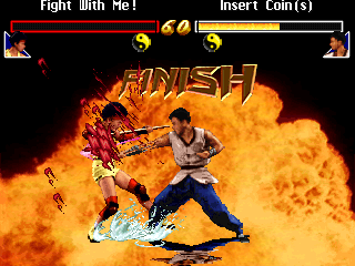 The fatalities are probably the worst part of this game. Like Mortal Kombat this game lets you set up a deadly final blow after defeating your opponent. This is done similarly to Tattoo Assassins, where anything you do be it a punch or a special move will trigger a fatality. If you throw your opponent they will bounce around the screen like Popeye just socked them and when you do a hard kick, they will fly into the screen, breaking it in the process. It’s all very cheesy and cheaply done, and you see almost immediately that it seems very last minute and out of place. This same fatality system was used by Kaneko in another arcade game they put out titled Blood Warrior, which also utilized digital actors.
