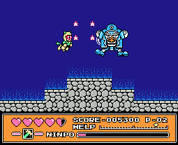 But it’s not just the mechanics that would have made this a great game to play back in 1991. It did a good job of also capturing the visual spirit of the TV series (languages/dialogue differences aside), with many characters from the cartoon turning up in cut-scenes. Throughout, the visuals are excellent for a Famicom title – to find better you’d need to look at the best from Konami or Nintendo from this era. Everything is well animated and makes good use of available colours, with a lot of diversity to the locations, even if several enemies are palette swaps. A few stages also have parallax scrolling in the backgrounds, which isn’t too common on the Famicom. Plus it’s full of wacky characters, like a guitar playing octopus! How can you not love that?