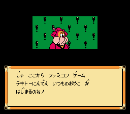 These two often appear in the cartoon, and are present in several in-game cut-scenes, including a clever 4th wall breaking one where the mom makes reference to the Famicom game.