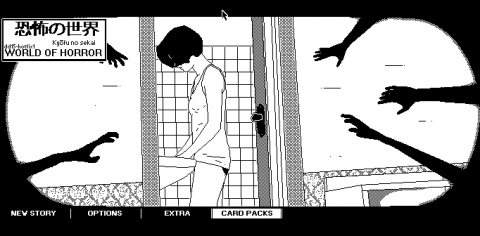 Made by Polish developer “panstasz,” World of Horror is a horror RPG based on both the works of Ito and H.P Lovecraft, mixing together Ito’s particular brand of Japanese horror and the cosmic creatures of Lovecraft’s mythos, and it truly feels like nothing else out there. The game instantly catches the eye with the unorthodox graphics, basing itself on old 1-bit Mac aesthetics, making detailed comic portraits from the smallest of monochrome bits. This is where most of the Ito send-up comes from, as every single image in here looks like it was ripped directly from an Ito manga, just digitized to make the straight lines blocky. Multiple parts of the game also recreate illustrations from the man himself, most notably a scene with a mirror with a swirling face and a recreation of his own illustrated portrait.