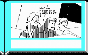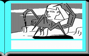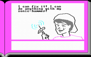 It’s an interesting idea, but for all of the grandstanding about creating a new form of media, it completely falters because it looks awful. Developed for the Commodore 64, Apple II and CGA-era IBM PCs, the artwork is abysmally simplistic, looking pathetic compared to Sierra’s AGI games, which, by 1988, were pretty dated themselves. There’s some cool scaling and panning trickery, and occasionally bits of animation, so you’re not just watching static frames, but that doesn’t excuse how incredibly sketchy it all looks. The IBM PC version has a higher resolution than the other versions, but those have better coloring. To top it off, the writing is terrible. It’s supposed to be a cheesy comic, but it comes off more like a kindergartner’s picture book. Meretkzy was apparently involved in the production, but the text shows none of his wit. Its humor is also pretty dull, other than a few amusing allusions – Lambert wields a sonic hammer, a take on Doctor Who’s Sonic Screwdriver, and there are a few fourth wall breakages which show the story being viewed by a pair of Siskel & Ebert caricatures. But it’s a far, far cry from real Infocom games, and its reputation as a disaster is completely justified.