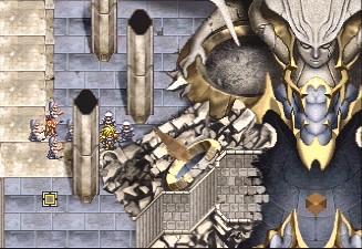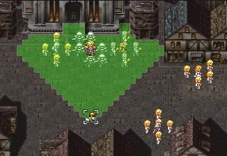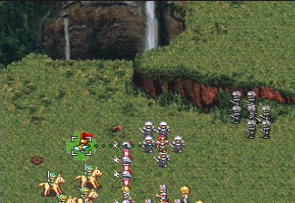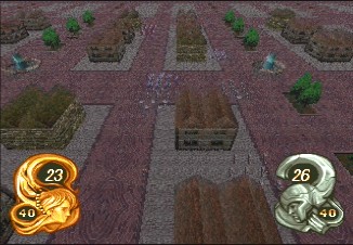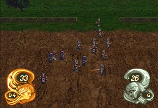 Instead of commanding each unit on the battlefield, you’re only given control over the generals. After setting a destination for your general, your characters and the enemies move simultaneously. When they collide, the screen zooms into the battlefield, where you can give specific commands to each squad member, or just let the computer take over. You’re then “treated” to a pseudo-3D rendition of the battle, but the graphics in these segments are godawful. The sprite based characters are too pixellated, and the battlefield contains almost no detail, just sparse, low-res textures. The camera can’t keep up either, darting over the battlefield almost randomly, and the framerate varies greatly depending on the action. The action is pretty frantic, and it’s fun to see your generals unleash their special attacks and send hordes of soldiers fly to their deaths. It seems like Masaya wanted to imitate the grand-scale mini-wars found in Sega’s Dragon Force games, but they just didn’t know how to do it right.