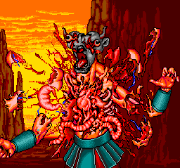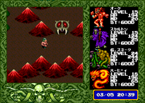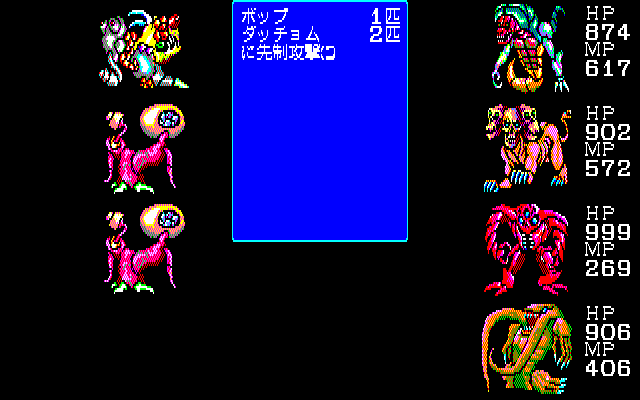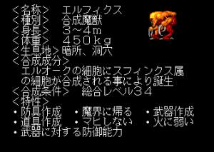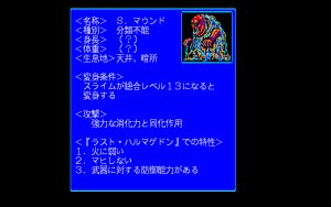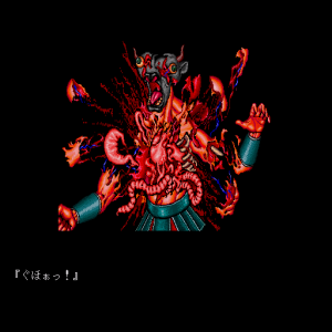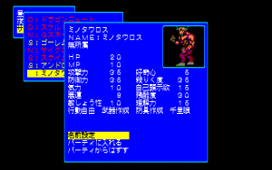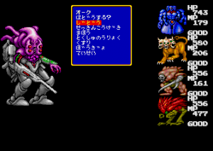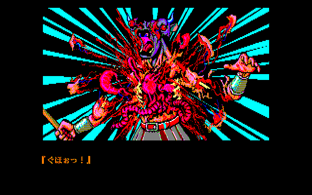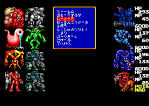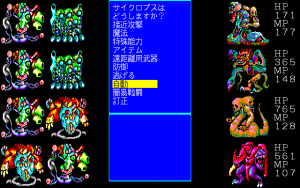 The later X68000 and FM Towns releases offer higher resolution and more color, as well as remixed music and voice-acted cut scenes. Additionally, about 40 of the final-stage monsters were redesigned entirely, for the future releases as well. The new designs are almost all better, more varied, and more menacing, but they don’t show much resemblance to the original monsters that went into them.