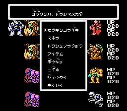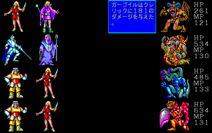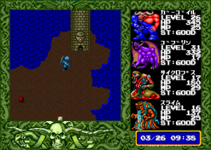 The final release for the Famicom was outsourced to Advance Communication Company, developers of the infamous Dr. Jekyll and Mr. Hyde. That said, it’s an extremely faithful port, keeping the full first-person dungeons from the PC versions and the bosses of the PCE CD version. But hardware limitations mean the dialogue is very concise, and more than half the monsters were cut from this version. And worst of all, battling and moving around are incredibly slow, making the game even more of a slog than before. Finally, the music is totally different and rather less appealing, sporting influences from surf rock and atonal bass drone.