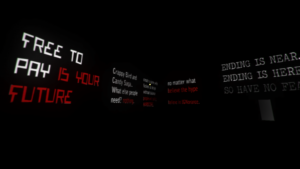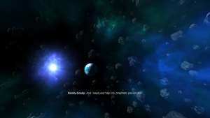 The text here is all nihilistic, looking at the state of the world, culturally, politically, and environmentally, and finding nothing good in it. So, comedy is used to find some sort of entertainment from the sheer horror of it all, to different levels of success. The English translation was not exactly professional, leaving a few gags to get lost in translation or lose their timing, but the broad strokes are darkly amusing in a cosmic sort of way, especially where the warring gods story line ends up going. The narrator they got for The Stanley Parable section also does a pretty fantastic job with the lines he has, with the entire section being much more openly aggressive and cynical than the more absurdist bent the source material had. It’s the main ideas and the fairly extreme style of dark humor that gives the game some serious charm, not to mention what they manage to do with a few sections despite clearly having very limited resources.