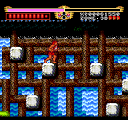 The game follows a linear path with sidescrolling stages. The levels are fairly diverse, from jungle landscapes to haunted to caverns to ruined castles. The levels are referred to as zones, with five in total. Some of the levels are so huge that they are divided into letters. Interestingly enough, the level design of the final zone removes linearity and forces you to memorize where you have to go – it’s a large maze just like Bowser’s Castle in Super Mario Bros. The maze has around 20 areas using almost every letter of the alphabet because it’s such a huge stage.