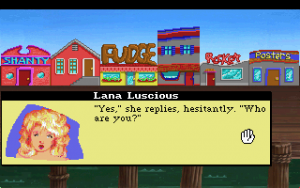 Unlike the previous game, which was split into halves, the viewpoint switches between Larry and Patti at various points. Larry has three models to visit – Michelle Milken at a computer club in New York City, Lana Luscious at a casino in Atlantic City, and Chi Chi Lambada at a dentist’s office in Miami. Meanwhile, Patti has two different offices to check out. Each character can approach their scenarios in any order, although the two storylines (and protagonists) finally converge right at the end.