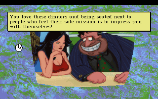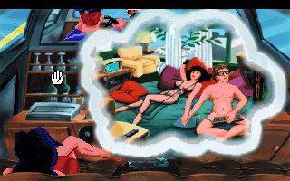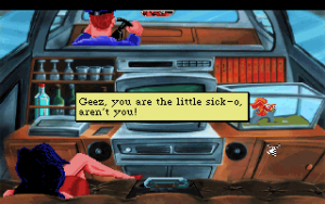 When approached from the viewpoint as a casual adventure player, the ease of the game may not necessarily be a bad thing, but the essential steps are remarkably tedious. In Larry’s adventures, you literally spend half of the game climbing out of limos, scanning your credit card, entering the copy protection code, getting in the airplane, getting off the airplane, scavenging through the airport to find spare change, looking for the ad for the local limo company, calling the local limo company, getting back into the limo, telling them your next destination, and conquering a few menial tasks. It also doesn’t help that the humor is more hit or miss this time. There are some amusing moments to be sure, but the media satire isn’t fully explored, and the encounters with the ladies just aren’t funny. At one point, Larry gets in a mud wrestling match which gets out of control and then… he goes flaccid. Not really very creative. It’s the first Larry game (not counting the remake of the first one) that uses the SCI1 engine, and features the beloved “Zipper” icon. It also introduces the bodily functions keys, which lets you burp, fart, or otherwise screw around at your leisure. And the cartoony graphics style, combined with comic book pin up artwork for the ladies, looks fantastic. But otherwise, this one is kind of a bust.