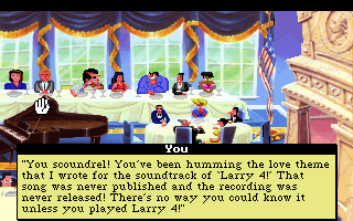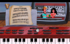 Leisure Suit Larry 5 begins with the two lovebirds apparently separated, with Larry working for a porn company, and Patti playing piano in putrid pisshole of a nightclub. Larry has been assigned to scout models for his company’s upcoming release, “America’s Sexiest Home Videos”, because his boss figures that since Larry is so pathetic, any woman that gets with him must be the perfect candidate for their show. Meanwhile, Patti is hired by the FBI to investigate a few record producers, who have been sneaking subliminal messages into their songs.