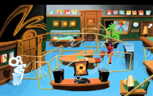 Leisure Suit Larry 5 is a bit of design experiment for Sierra, not only because of the freeform chapters, but the fact that you can’t die, or even lose the game. The lack of death scenes will come as disappointing to anyone who enjoys the black humor found in other Sierra games, although it certainly does make the game less frustrating. There are plenty of missable items that are used later in the game, but if you forgot to get them, hey, no biggie – the game just proceeds as normal. If you don’t have the items to seduce a woman, or forget to video tape them – which is the whole point of Larry traveling over the country to begin with – it doesn’t ever matter. Larry will still score with them, and the game goes on. That’s a bit of an odd approach to game design – you can never get stuck in most LucasArts games, but the items are placed in a way so that they’re always accessible, at all items. Larry 5 forgoes that, and simply makes half of the puzzles optional. Other than the point total, all it does is affect is one of the later scenes, where an omniscient voice laments on all of the things you missed.