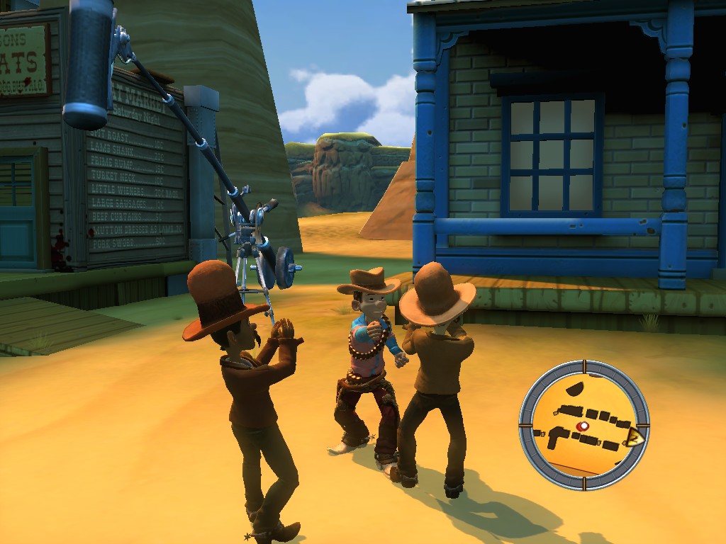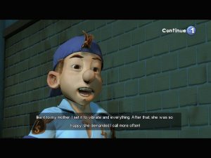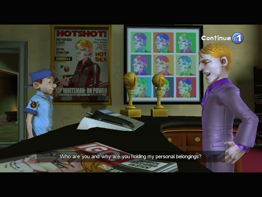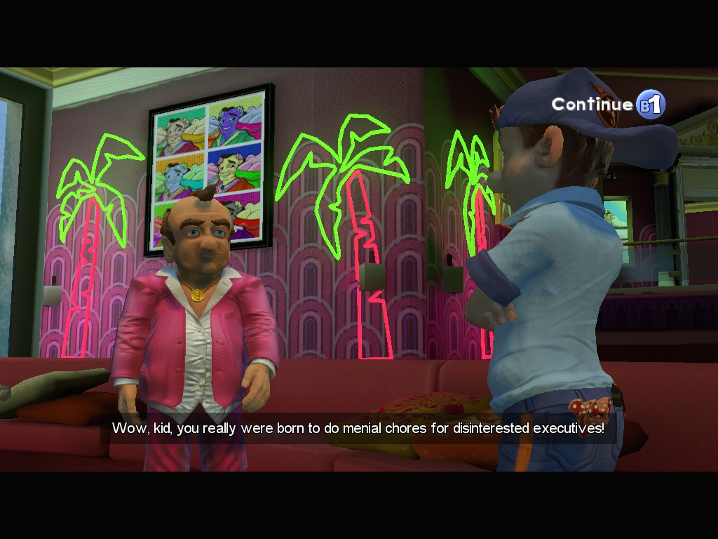 Magna Cum Laude was a huge change in the formula, but with Box Office Bust, the apple has fallen even farther from the tree. This time around, it’s an open world action-platformer, as Larry explores the studio and gets missions for different people. For the most part, these tasks involve running around to other parts of the studio, occasionally while driving a kart or under a time limit. Sometimes you’ll have to scale the heights of the buildings and jump around, collecting items and such. Other times you have to get into terrible fight sequences. There are several quick time events that involve pushing the right buttons at the right times, as well as a “directing” minigame, where you choose the most appropriate shots of a scene.