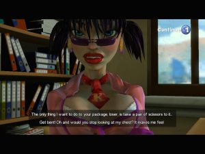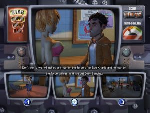 Every once in awhile, an “Employee of the Month” will become available, which means there’s a girl you can try to bag. Conquering them usually requires finding a certain item and weaseling your way through a dialogue tree, after which you and your lady will disappear briefly into your trailer. This is the only moment where Box Office Bust even remotely channels the old games, but the whole experience is appalling for any number of reasons.